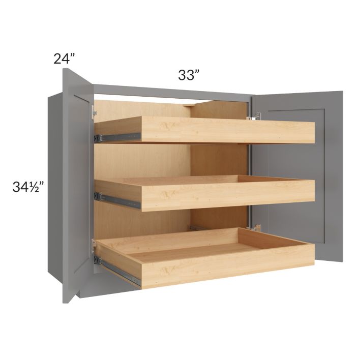 Graphite Grey Shaker 33" Full Height Base Cabinet with 3 Rollout Trays