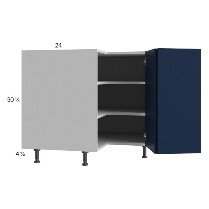 Easy reach corner cabinet with a bi-fold door that takes up 33" of wall space from the corner out, on each wall. This cabinet has 2 adjustable wood shelves.