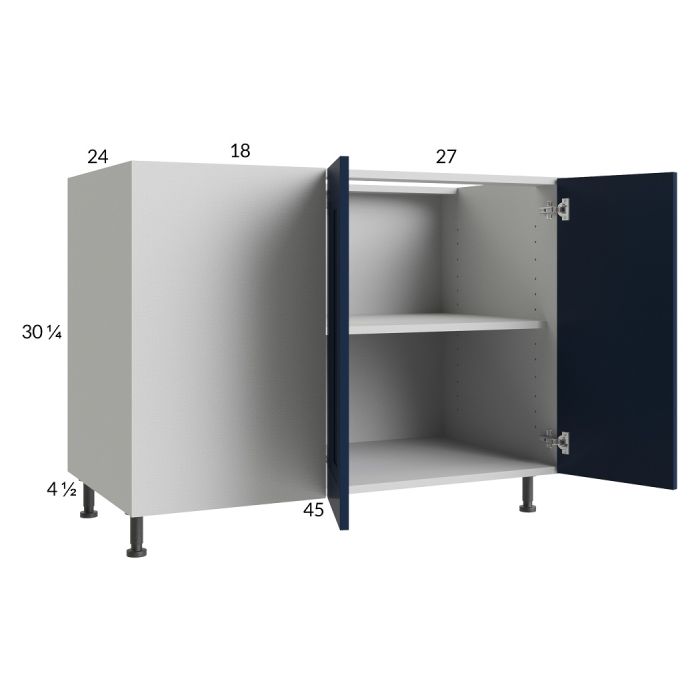 Description / Harbor Navy 52" - 55" Full Height 2-Door Blind Base Corner Cabinet
