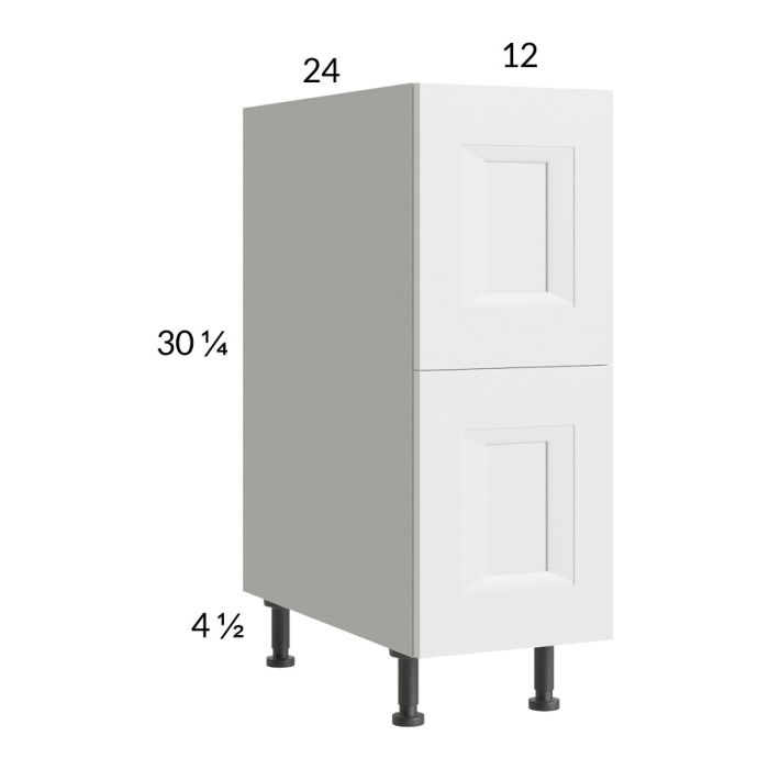 Description / Harbor White 12" 2-Drawer Base Cabinet
