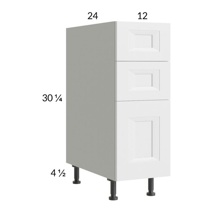 Description / Harbor White 12" 3-Drawer Base Cabinet