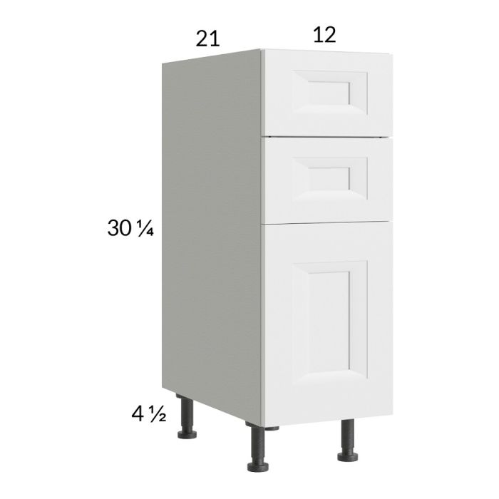 Harbor White 12" 3-Drawer Vanity Base Cabinet