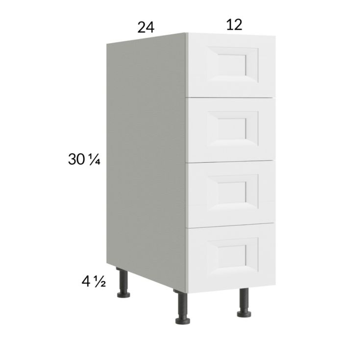 Description / Harbor White 12" 4-Drawer Base Cabinet