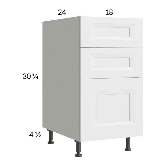 Description / Harbor White 18" 3-Drawer Base Cabinet