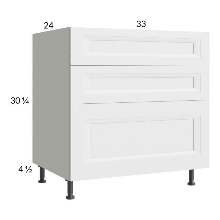 Description / Harbor White 33" 3-Drawer Base Cabinet