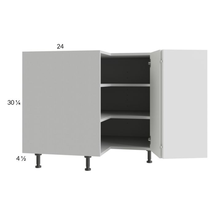 Easy reach corner cabinet with a bi-fold door that takes up 33" of wall space from the corner out, on each wall. This cabinet has 2 adjustable wood shelves.