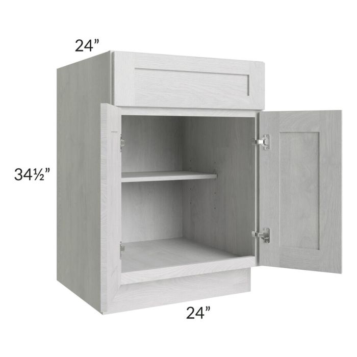 2 door base cabinet with 1 drawer and 1 shelf. There is no center stile on this cabinet.