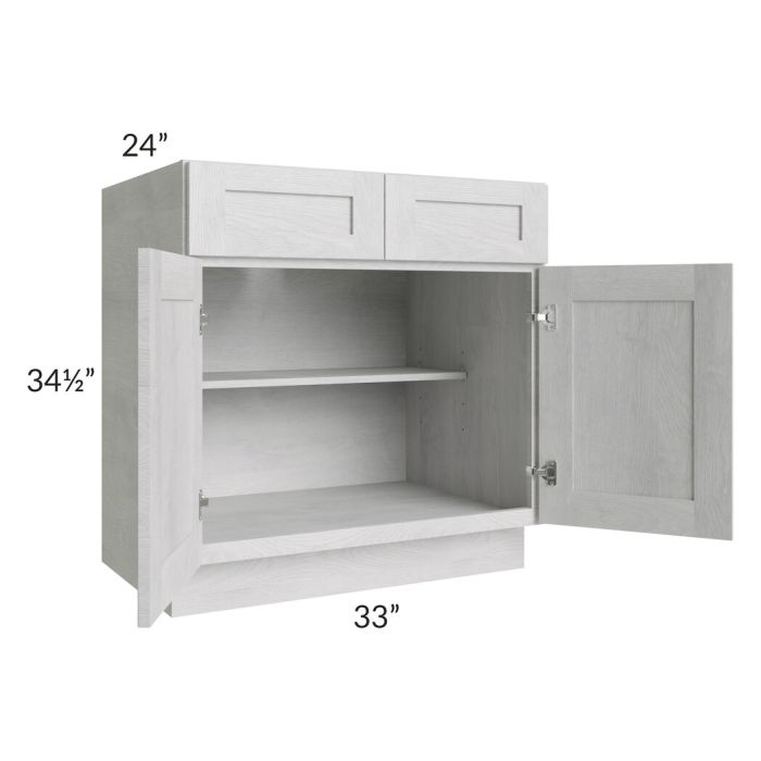 2 door base cabinet with 2 drawer and 1 shelf. There is no center stile on this cabinet.
