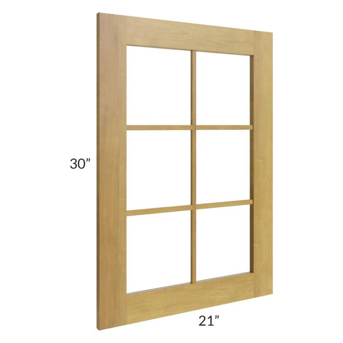 Glass door for a 21"W x 30"H wall cabinet that will match the door style of the cabinet and has plain glass. The glass is also included.