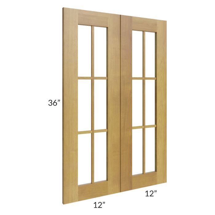 Set of mullion doors for a 24"W x 36"H wall cabinet that will match the door style of the cabinet and has clear glass. The glass is also included.