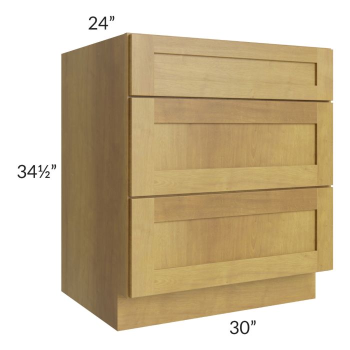Heritage Amber Shaker 30" 3-Drawer Base Cabinet