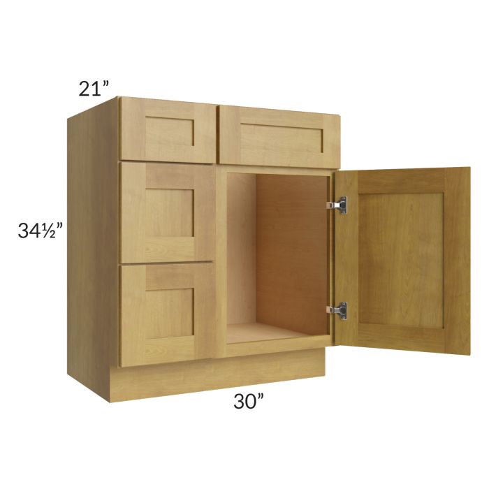 Heritage Amber Shaker 30" Vanity Sink Base Cabinet (Drawers on Left) - Out of stock through April
