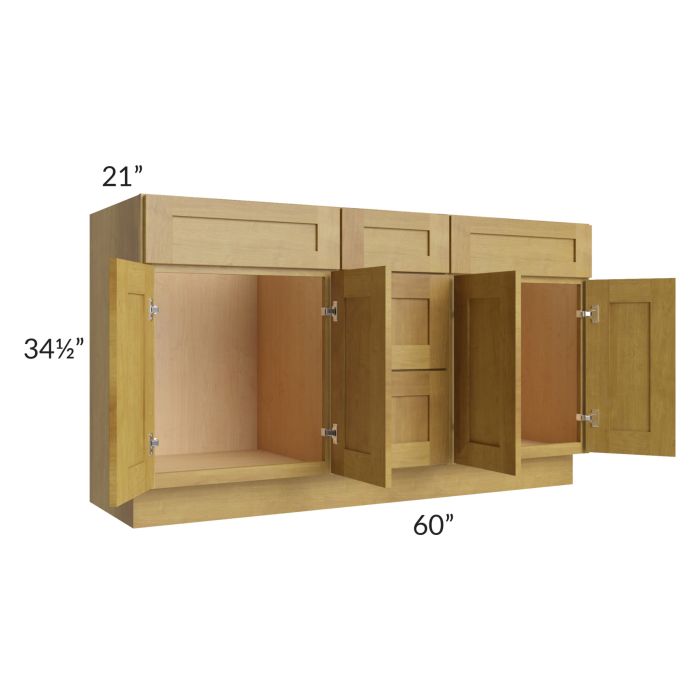 Description / Heritage Amber Shaker 60" Vanity Sink Base Cabinet with Drawers