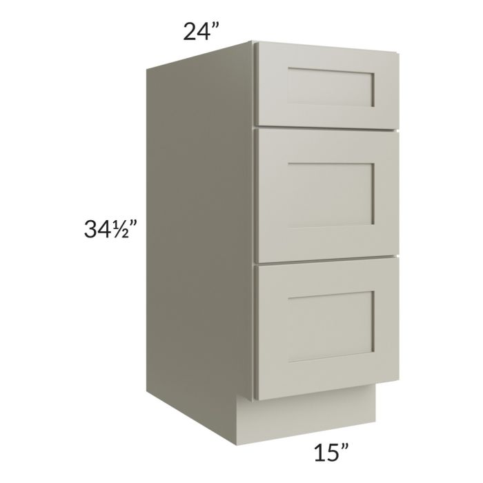 Kingston Pearl Grey Shaker 15" 3-Drawer Base Cabinet