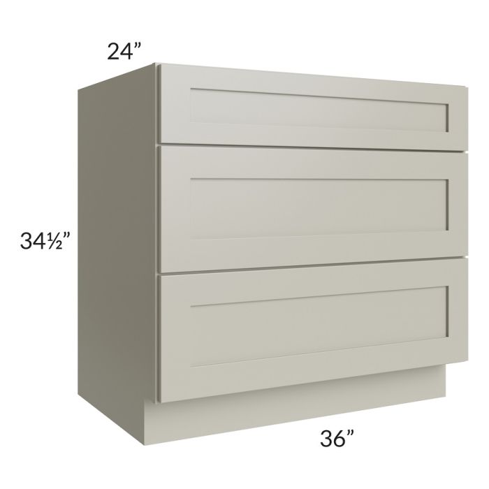 Kingston Pearl Grey Shaker 36" 3-Drawer Base Cabinet