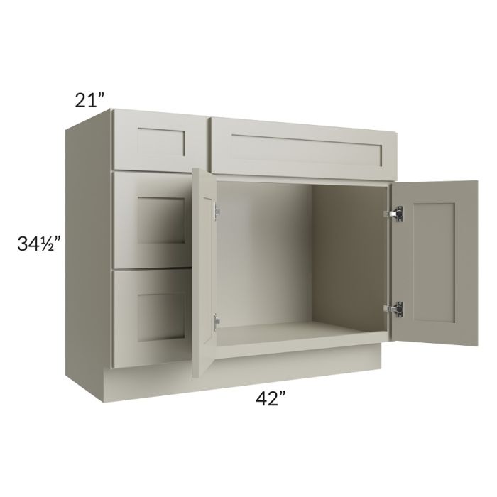 Kingston Pearl Grey Shaker 42" Vanity Sink Base Cabinet (Drawers on Left)
