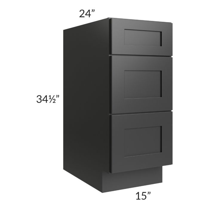 Kingston Steel Grey Shaker 15" 3-Drawer Base Cabinet