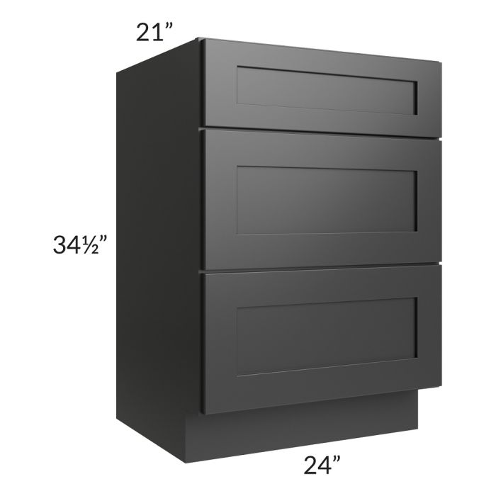 Kingston Steel Grey Shaker 24" 3-Drawer Vanity Base Cabinet