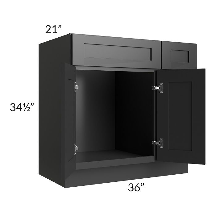 Description / Kingston Steel Grey Shaker 36" Vanity Sink Base Cabinet (Drawers on Right)