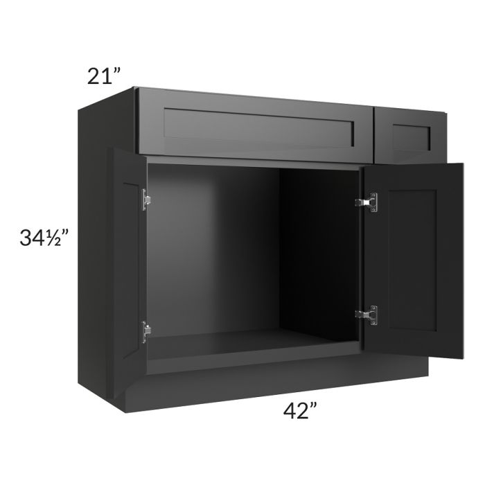 Description / Kingston Steel Grey Shaker 42" Vanity Sink Base Cabinet (Drawers on Right)