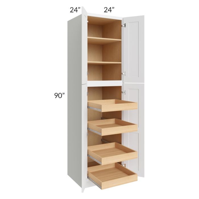 Lakewood White 24x90x24 Wall Pantry Cabinet with 4 Rollout Trays - Low stock through mid May