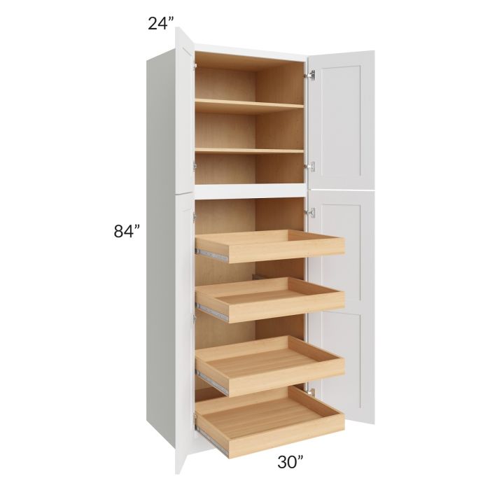 Lakewood White 30x84x24 Wall Pantry Cabinet with 4 Rollout Trays - Low stock through mid May