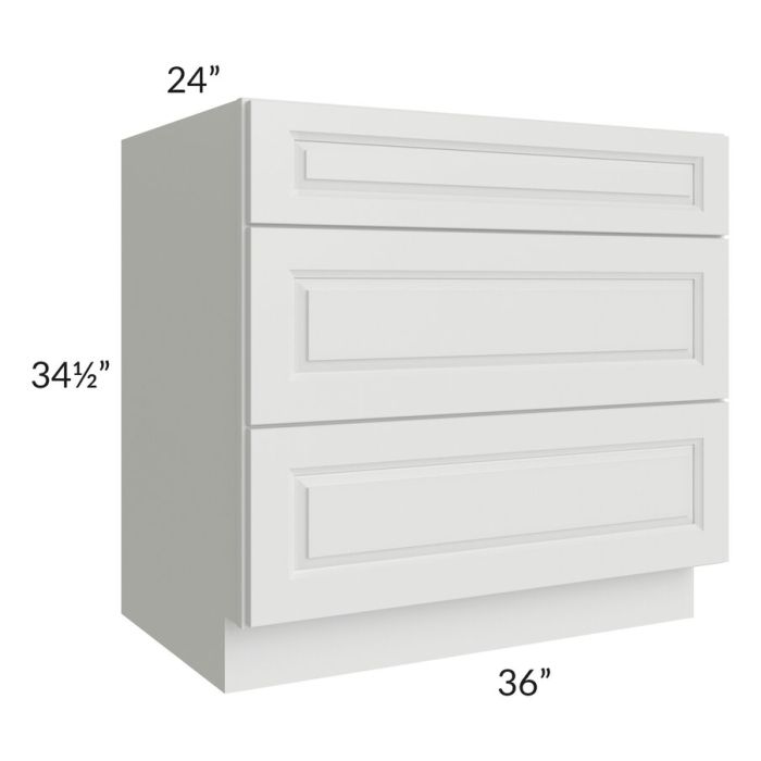 Lakewood White 36" 3-Drawer Base Cabinet
