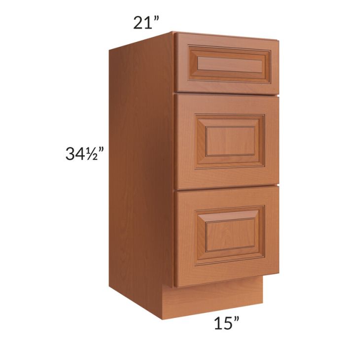 Description / Lexington Cinnamon Glaze 15" Vanity 3-Drawer Base Cabinet