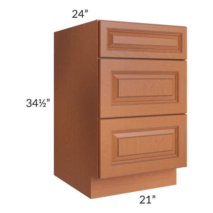 Description / Lexington Cinnamon Glaze 21" 3-Drawer Base Cabinet