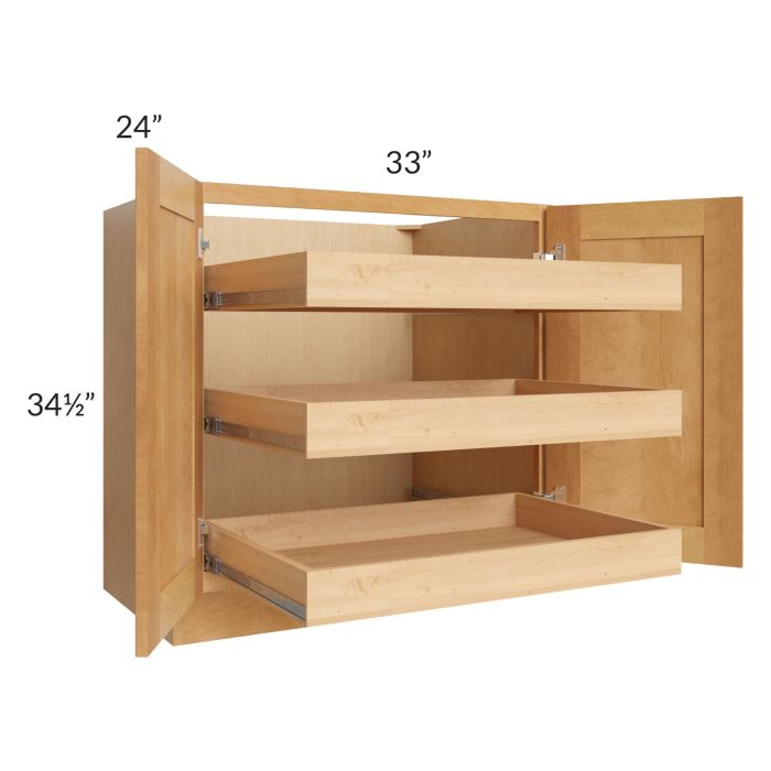 Madison Honey Shaker 33" Full Height Base Cabinet with 3 Rollout Trays - Low stock through mid April