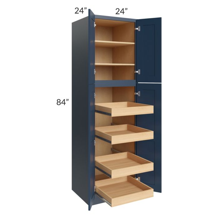 Madison Navy Shaker 24x84x24 Wall Pantry Cabinet with 4 Rollout Trays