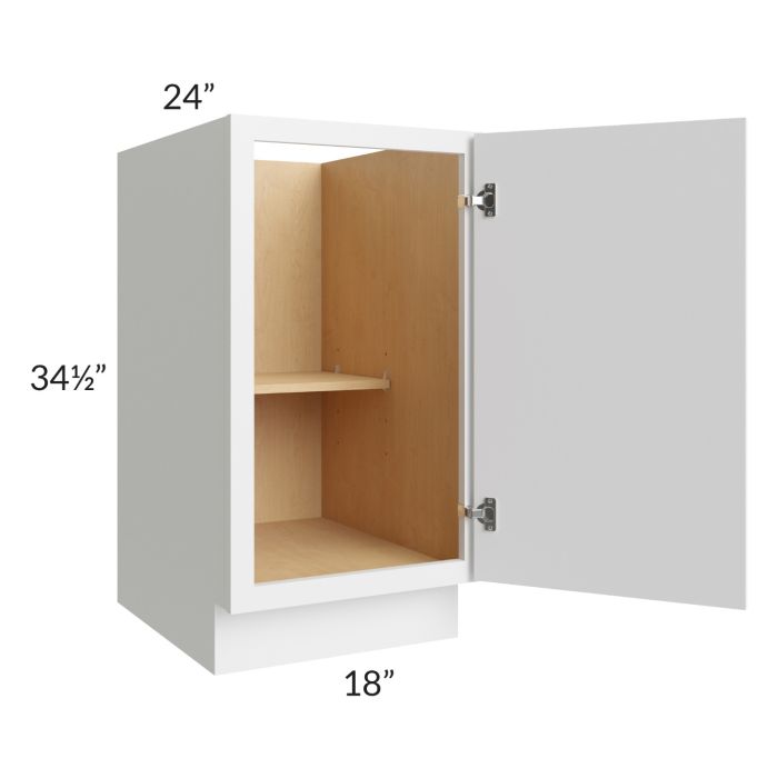 1 door base cabinet with 1 full height door and 1 shelf. A regular 18" base cabinet with a drawer will be shipped in addition to a full height face frame and door. The face frame, door and drawer box that comes with the 18" cabinet can be discarded and the full height face frame and door will be installed on the cabinet box.