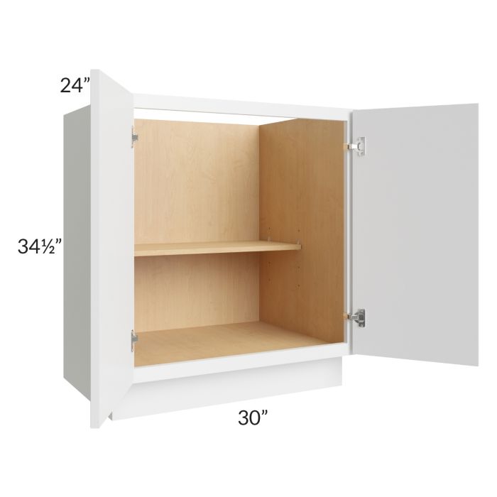 2 door base cabinet with 2 full height doors and 1 shelf. A regular 30" base cabinet with a drawer will be shipped in addition to a full height face frame and doors. The face frame, doors and drawer box that comes with the 30" cabinet can be discarded and the full height face frame and doors will be installed on the cabinet box.