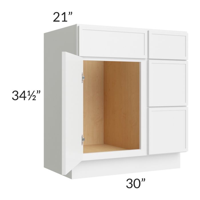 Metro White 30" Vanity Base Cabinet (Drawers on Right)