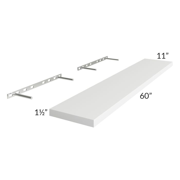 Floating shelf that will also include the mounting hardware. Once mounted, the shelf will be able to move or 'float' to the left and right. Each shelf can hold up to 25lbs. It can be trimmed up to 1/2‚¬ on each side but then will have a raw exposed edge so should be placed adjacent to a cabinet, panel, wall, etc...or the raw edge will have to be finished.