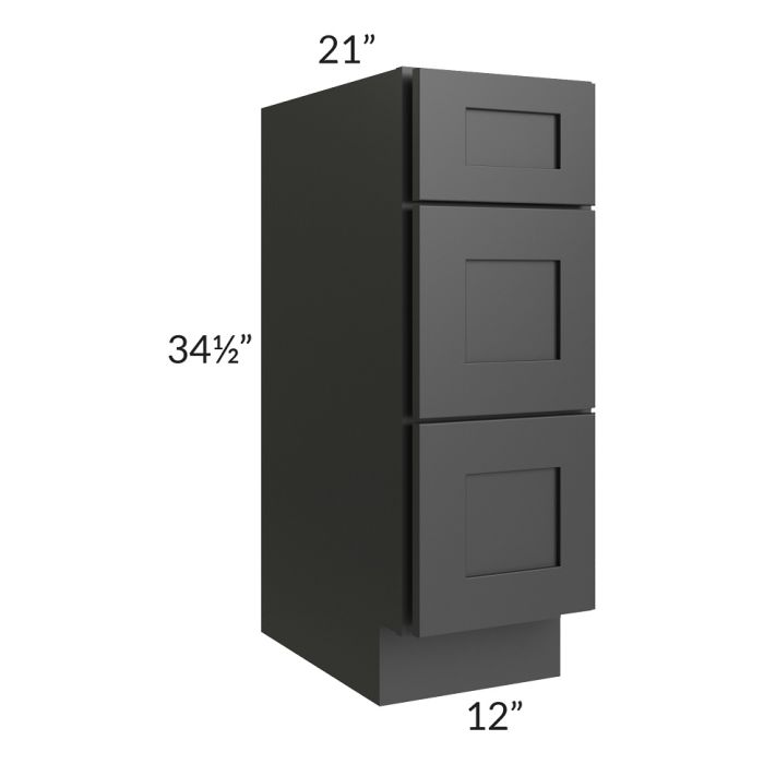 Description / Midtown Black Shaker 12" Vanity 3-Drawer Base Cabinet