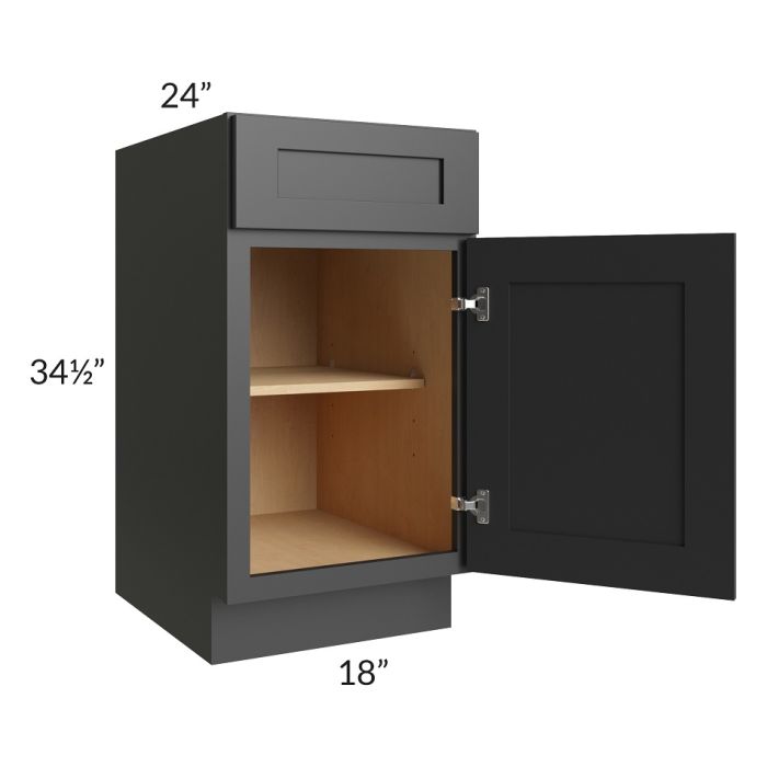 1 door base cabinet with 1 three quarter depth adjustable shelf and 1 drawer.