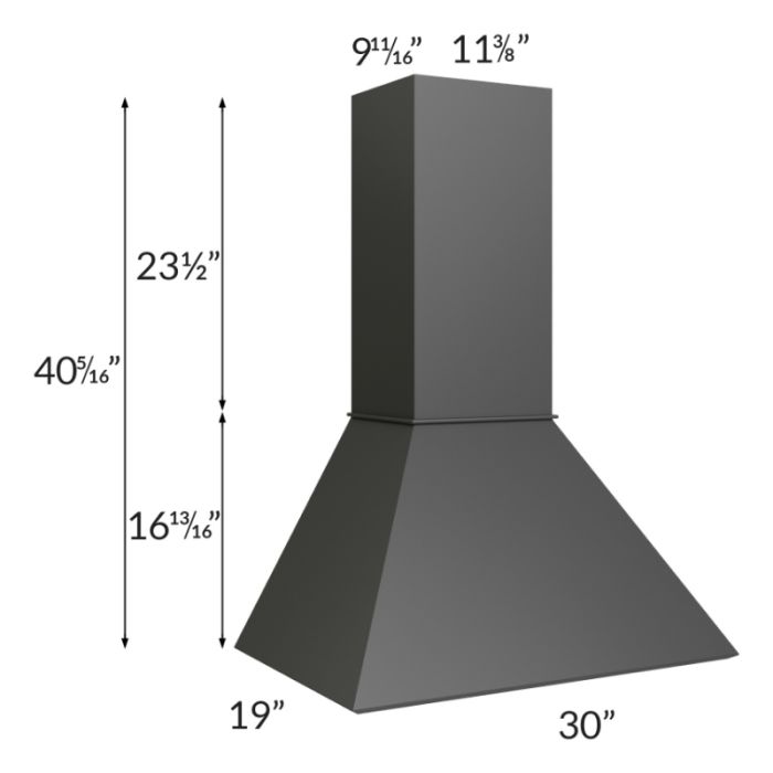 Euro style wood hood that comes with a stainless steel liner. The chimney height of 23-1/2" can be trimmed on site, if needed. Blower is not included and would need to be purchased separately. The chimney depth is 9-11/16" and the width is 11-3/8".