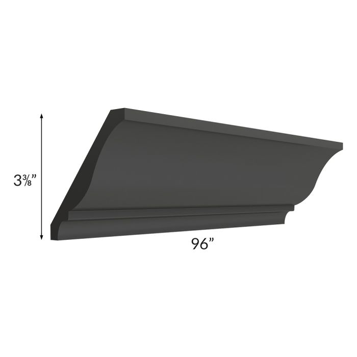 Large crown molding, when installed, it will be 3-3/8" high and will stick out from the cabinet 3".