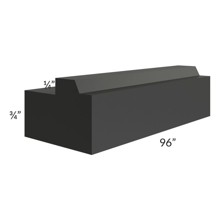 Light rail molding, overall depth is 1-1/2", the flat part that will install under the wall cabinets is 3/4" deep. The lip that will extend over the front of the wall cabinet is 1/4" high.