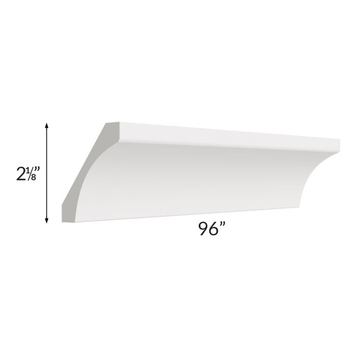 Small cove molding, when installed, it will be 2-1/8" high and will stick out from the cabinet 2-1/8".