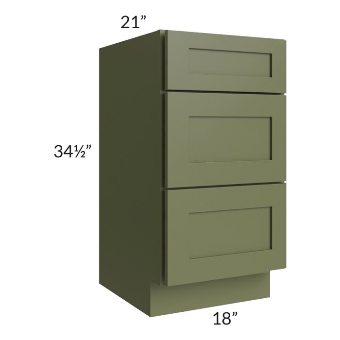 Description / Midtown Hunter Green Shaker 18" Vanity 3-Drawer Base Cabinet