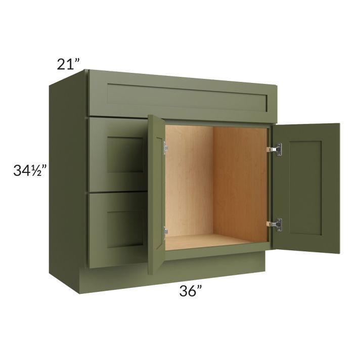 Description / Midtown Hunter Green Shaker 36" Vanity Sink and Drawer Combo (Drawers on Left)