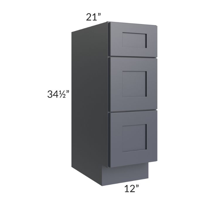 Midtown Indigo Shaker 12" Vanity 3-Drawer Base Cabinet