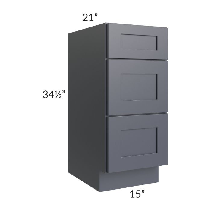 Description / Midtown Indigo Shaker 15" Vanity 3-Drawer Base Cabinet