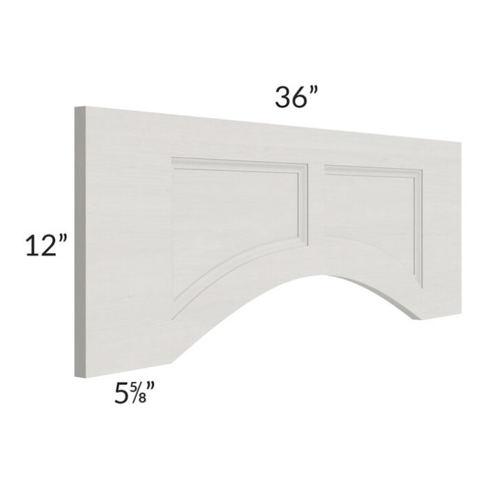 Description / Midtown Light Grey Shaker 36" Arched Recessed Panel Valance (Trimmable)