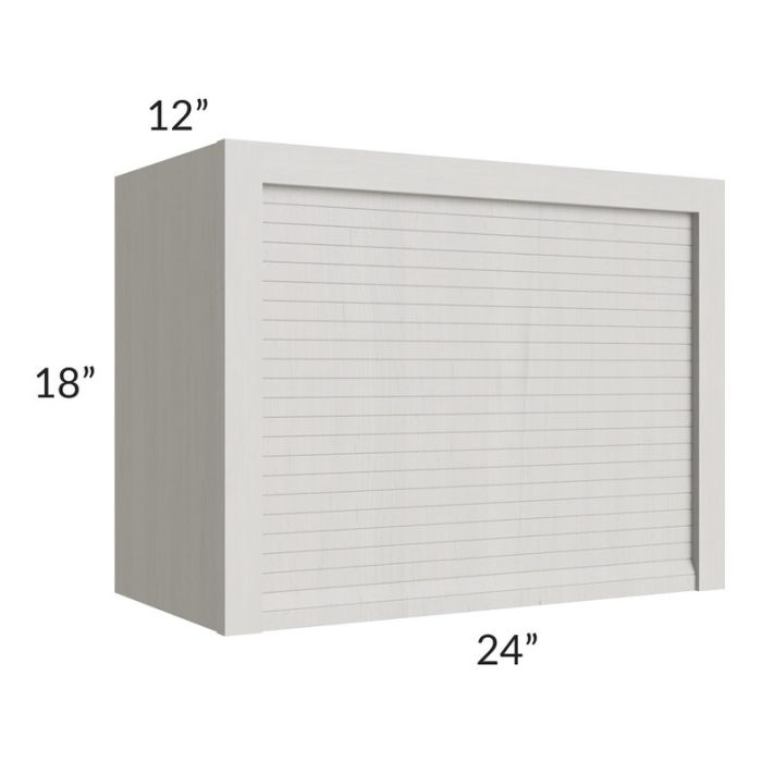 Appliance garage with a roll up, tambour door and is designed to fit under a 24" wide wall cabinet.