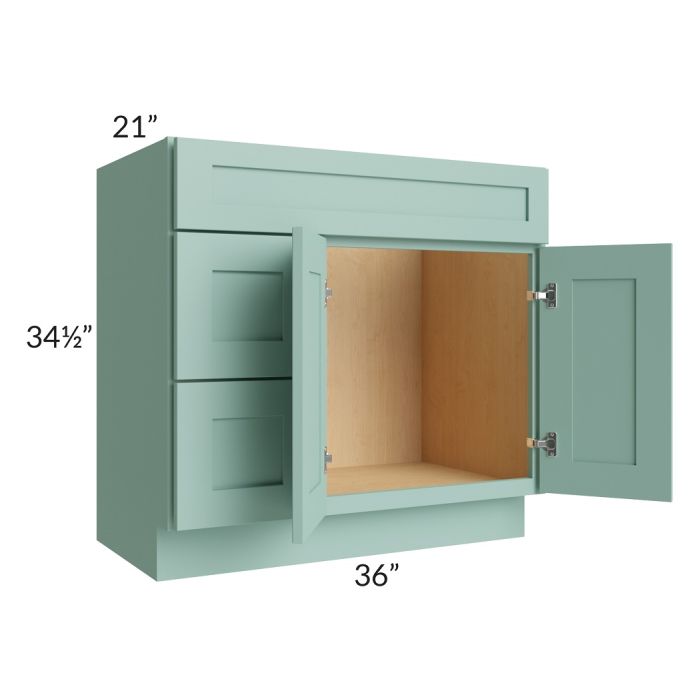 Midtown Mint Green Shaker 36" Vanity Sink and Drawer Combo (Drawers on Left)