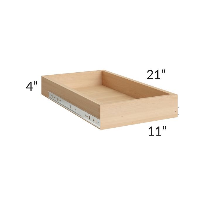 Roll out tray to be used in a 15" base cabinet or wall pantry (up to 4 can be used in a pantry). Interior height of tray is 3-1/4". The roll out comes with full extension, ball-bearing glides (not soft-close). Please note this roll out tray will only work with this collection. ***Please specify which cabinet to install this item in under the order comments when checking out or it will ship loose.***