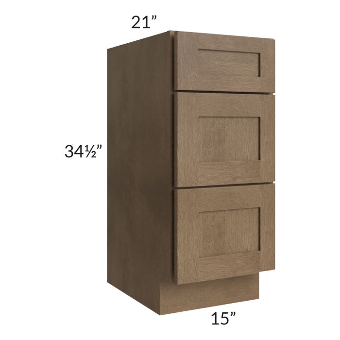Midtown Mocha Shaker 15" Vanity 3-Drawer Base Cabinet